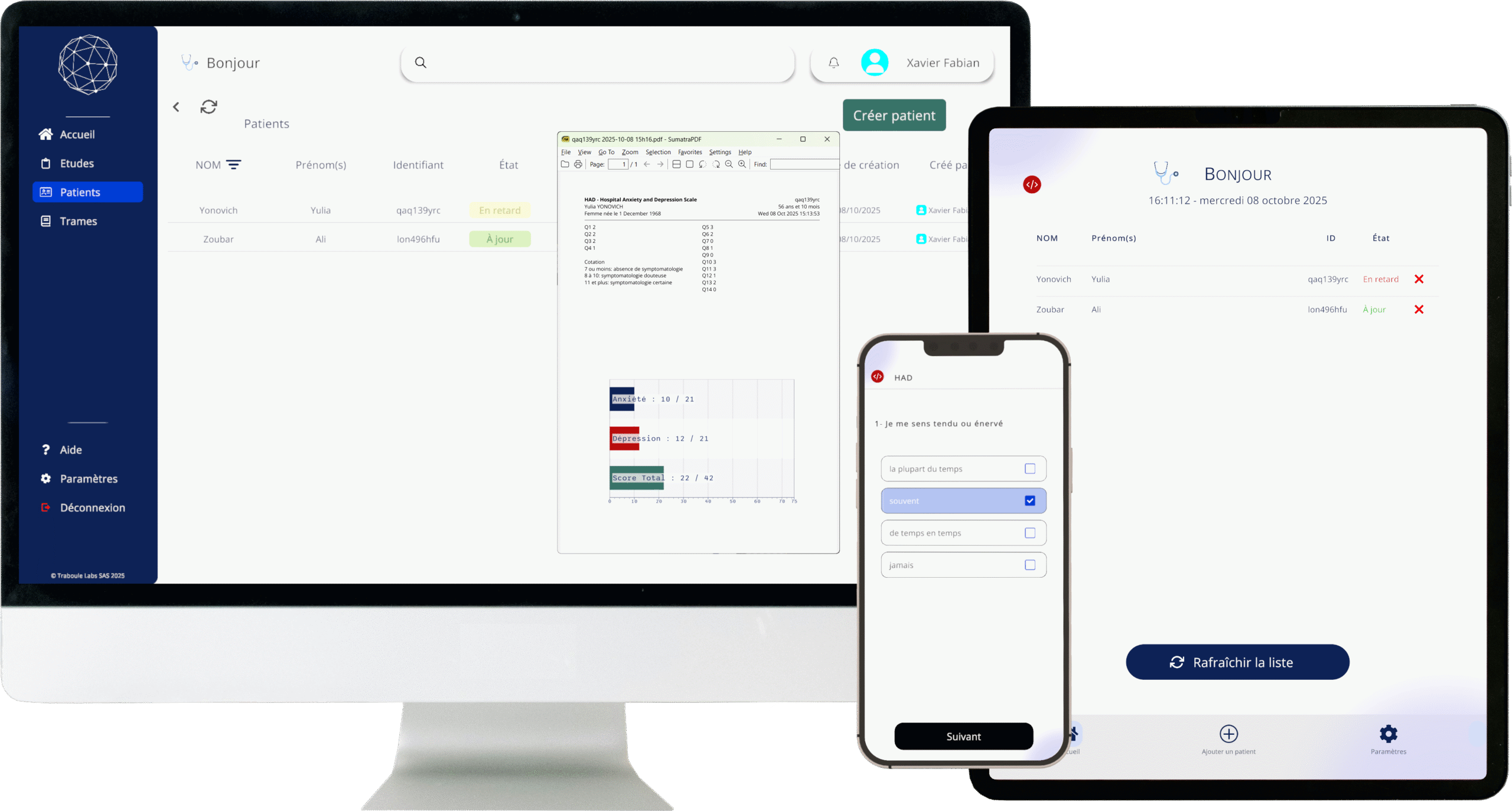 Pour chaque test intégré à l'application, le scoring et le placement dans la population se fait automatiquement.